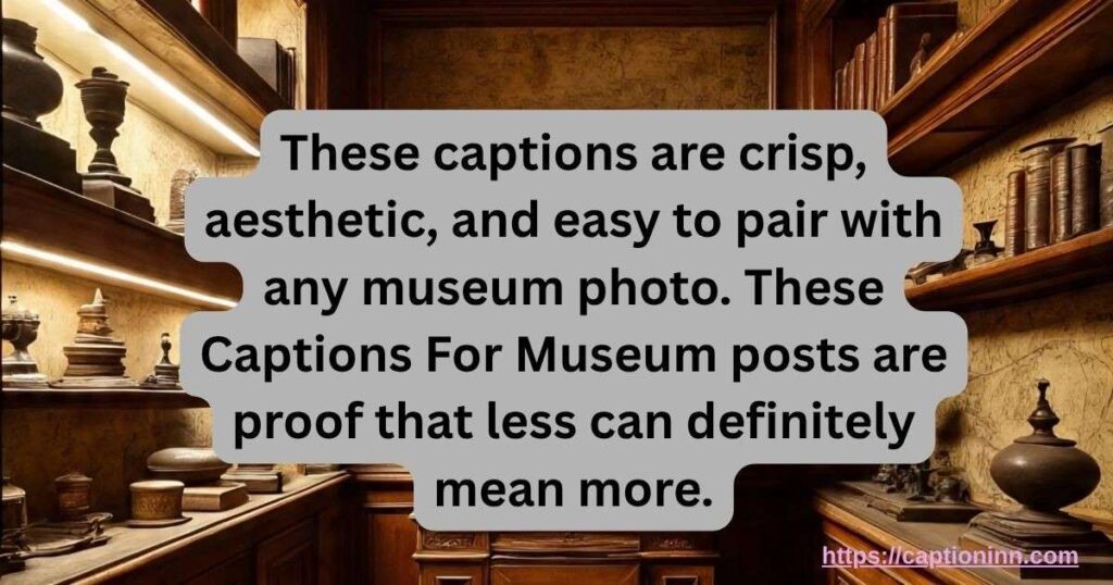 Sometimes short words say more than long sentences. These captions are crisp, aesthetic, and easy to pair with any museum photo. These Captions For Museum posts are proof that less can definitely mean more.